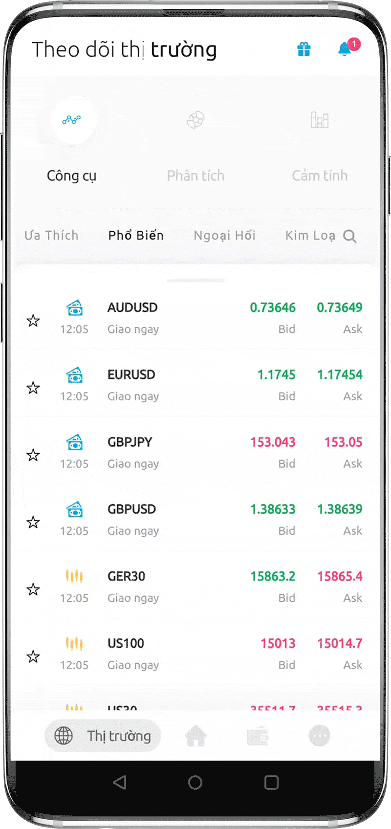 Nhận thông báo tức thì trên cập nhật thị trường quan trọng